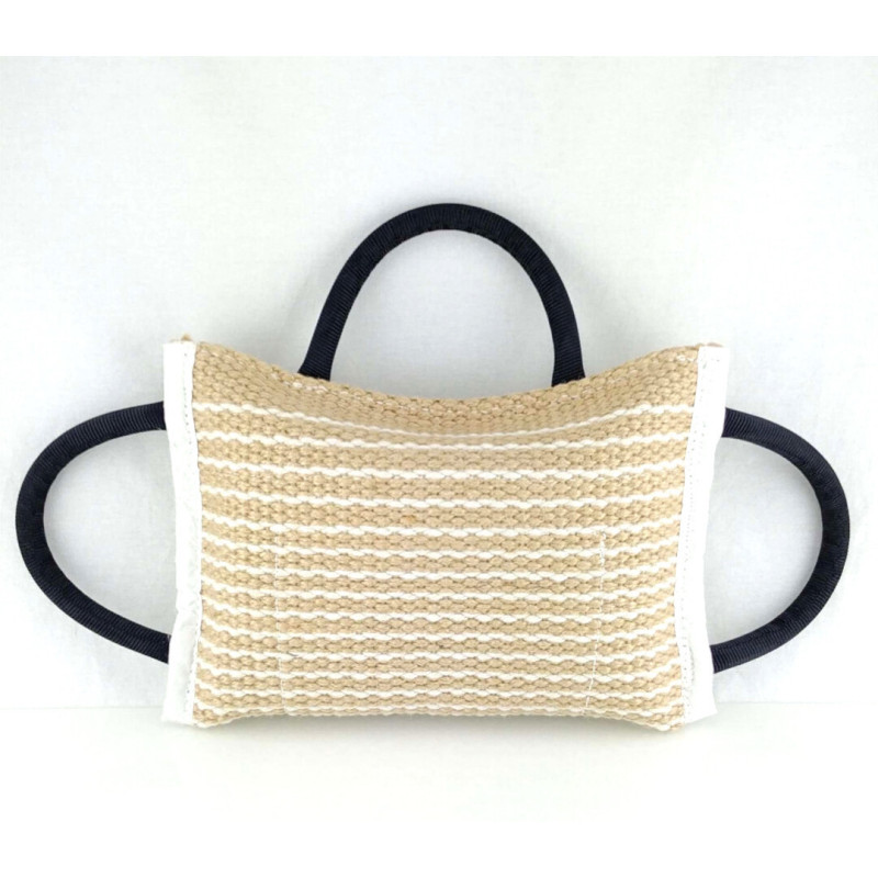 Cojín de confirmación Schweikert en yute con 3 asas: diseñado para todas las razas de perros de trabajo, con yute grueso de alta calidad y forma de cuña que se adapta perfectamente a la boca del perro.