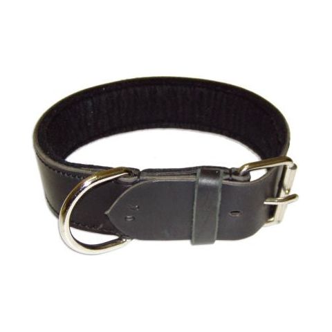 El collar de piel acolchado de Schweikert cosido a mano es de 50mm de ancho. Tiene en el interior una protección muy suave de fieltro, una hebilla y una anilla fuerte y muy resistente. Color negro.