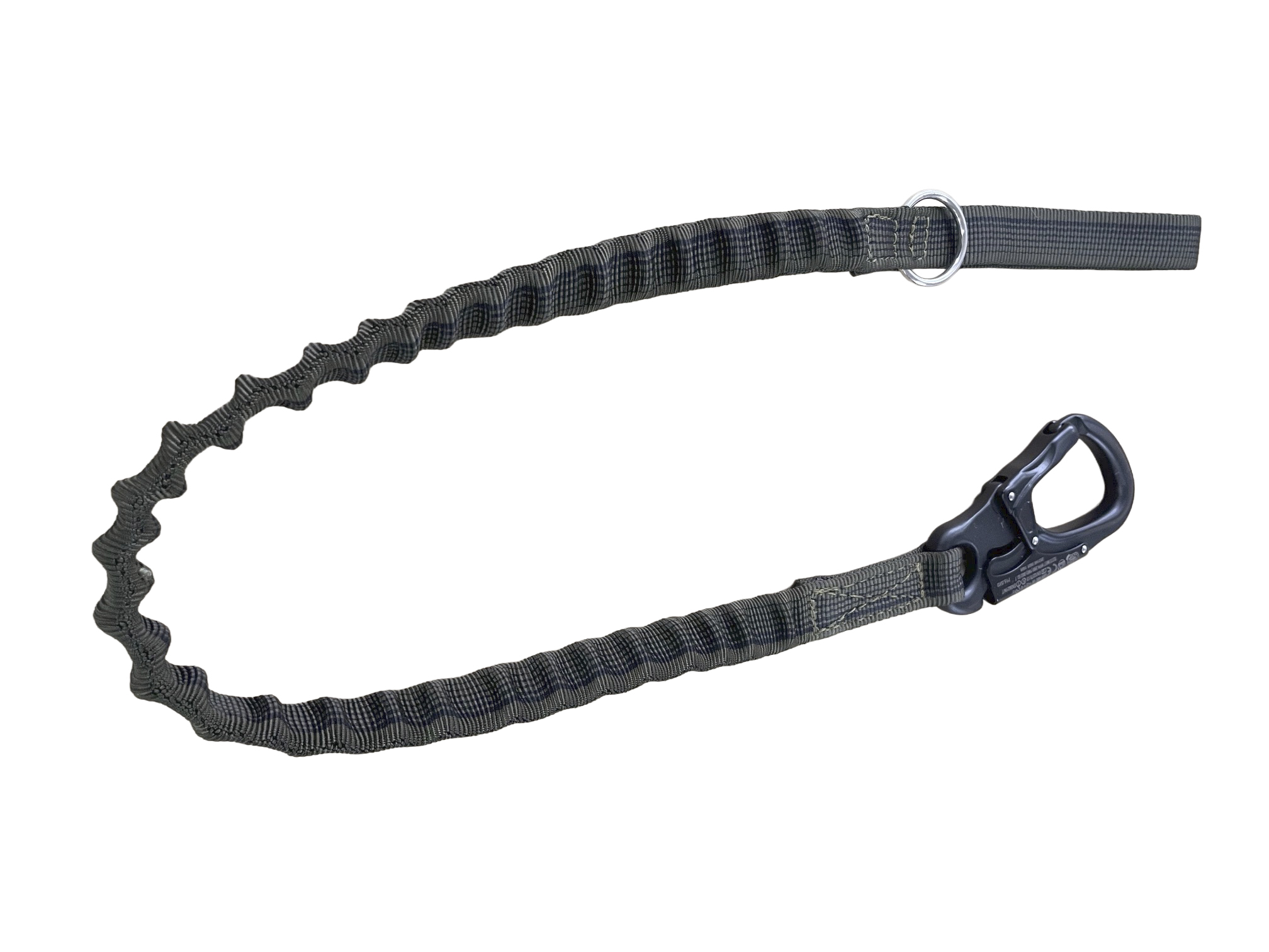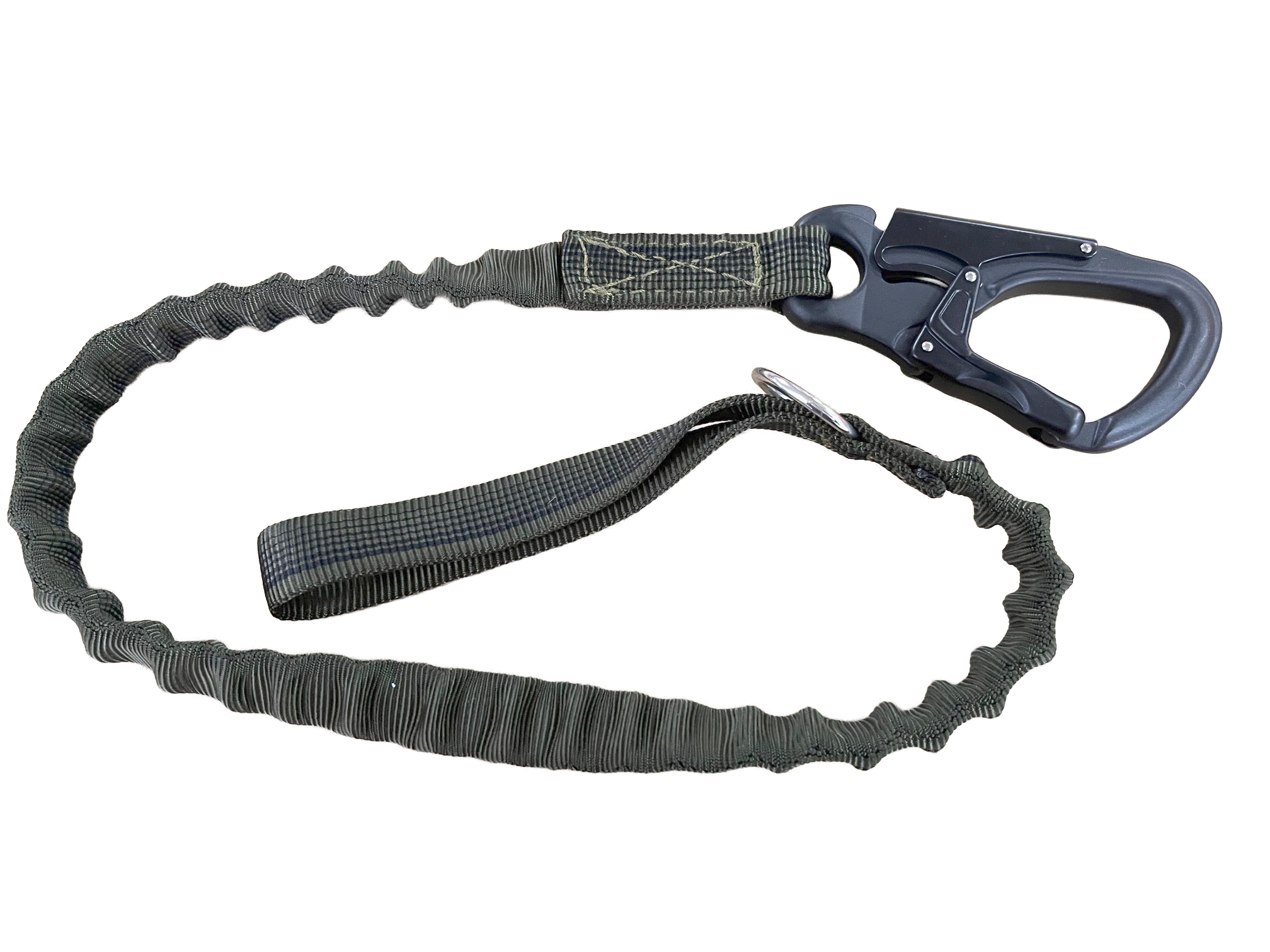 Correa elástica táctica con asa y mosquetón Tango de seguridad en aluminio con sistema de bloqueo. 1 m de largo, color caqui militar y extra fuerte y resistente a roturas, diseñada para trabajos tácticos, operaciones militares y acciones inmediatas con tu perro.