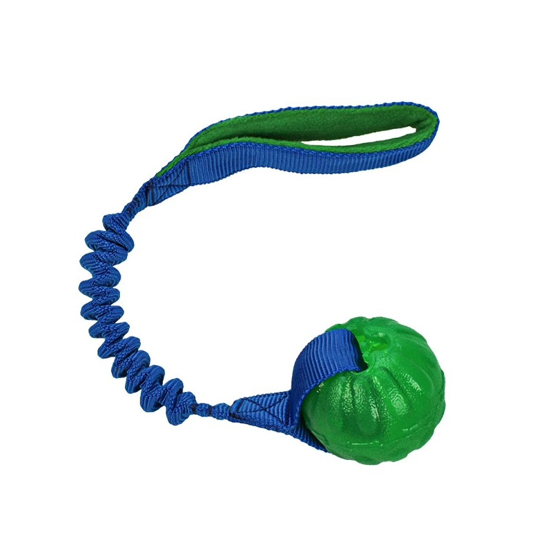 La combinación de pelota y asa elástica permite trabajar juegos de presa, motivación y recuperación con mayor control. El diseño facilita el manejo durante el lanzamiento y la interacción, manteniendo estabilidad en el trabajo.